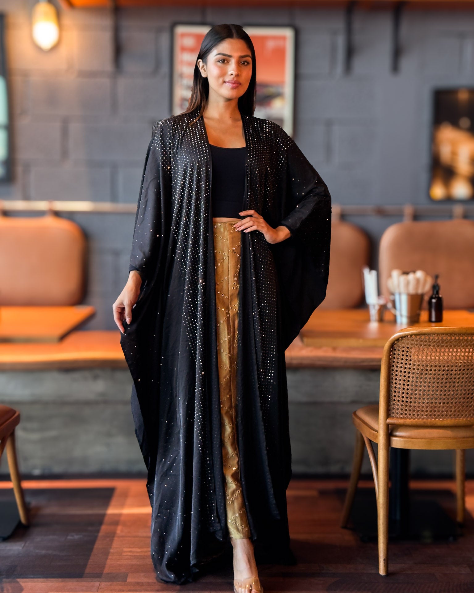 Exquisite Crystal Abaya featuring premium crystal embellishments that capture light with elegant precision. Sumptuous fabric drapes flawlessly, creating a silhouette of refined sophistication for the discerning wearer.