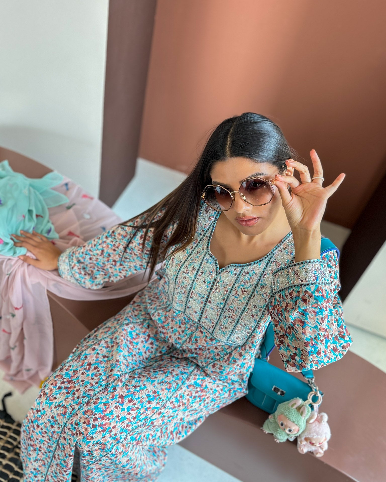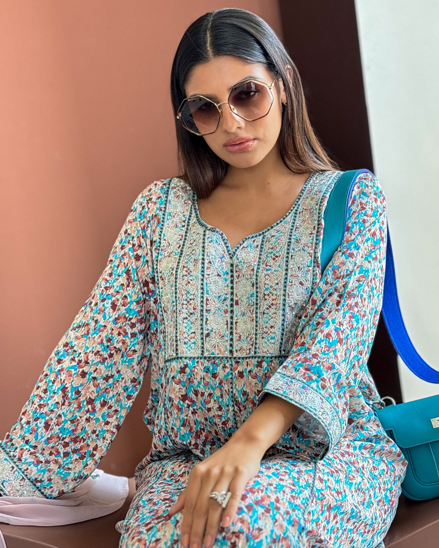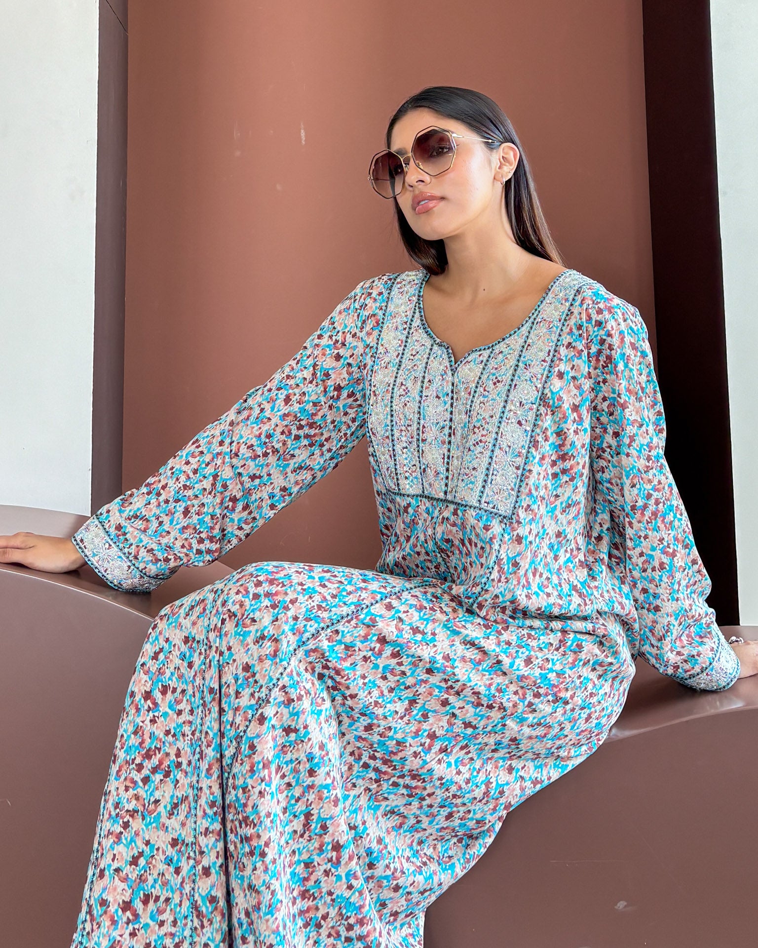 The Ana Blue Glimmer Dress exudes refined elegance with its luminous azure fabric. Delicate shimmer elements catch the light with subtle sophistication, creating a distinguished presence for discerning occasions. A masterpiece of understated luxury.