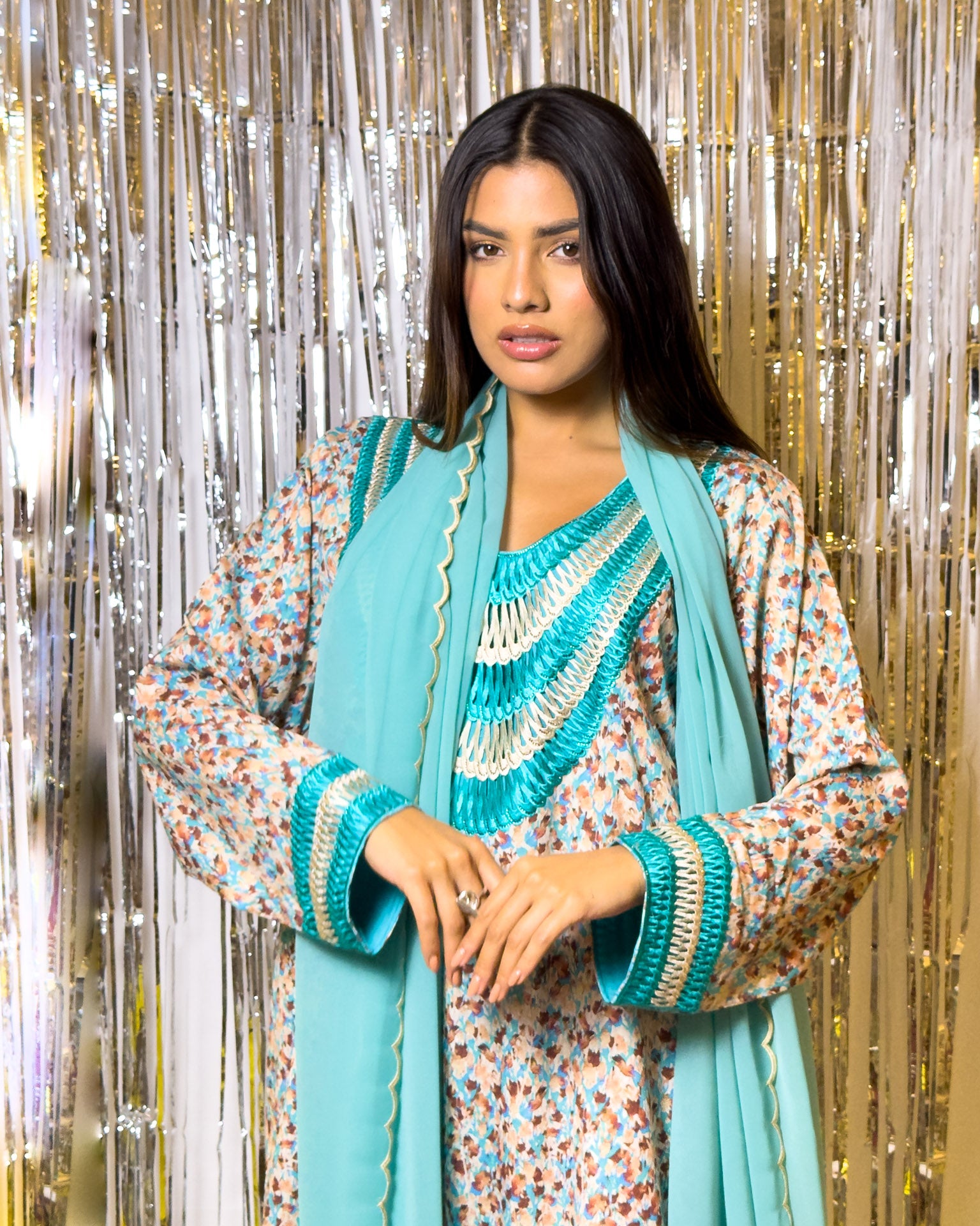 Elevate your evening attire with our Ana Blue & Silver Neckline Dress. This sophisticated piece features an exquisite silver-detailed neckline that gracefully complements the rich blue fabric. Meticulously crafted for both elegance and comfort, it creates a striking silhouette perfect for special occasions.